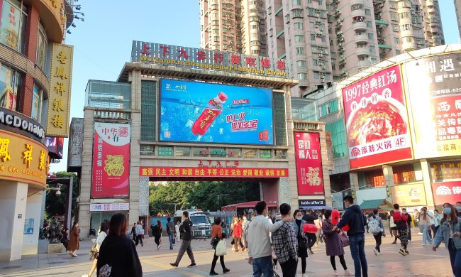 廣州荔灣康王路隧道上下九牌坊LED大屏廣告位于廣州康王路與上下九的交匯處,LED屏正對上下九步行街中心廣場,與地下康王路隧道的車流呈垂直視覺,人流與車流共享,是廣州荔灣西關(guān)商圈的黃金交匯點(diǎn)。大屏廣告橫長超21米,高度超8米,總面積達(dá)172.53平方米。LED屏所在建筑是上下九步行街的標(biāo)志性牌坊,是步行街中心廣場的視覺焦點(diǎn),直面龐大的消費(fèi)人流。