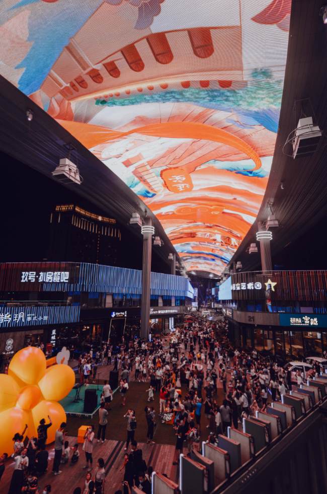 媒體形式: LED大屏 (東)278.9m*16.8m +(西)163.25m*16.8m+(東西街各一圓柱屏)38.78m2*2+(東街方柱屏)28.31m2=7534.07 m2