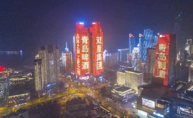 青島五四廣場樓體燈光秀廣告投放,青島地標(biāo)雙子座大屏廣告價格