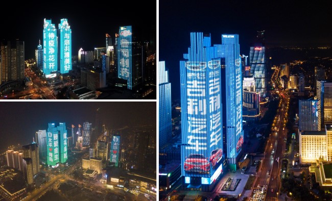青島五四廣場雙子座樓體燈光秀大屏廣告