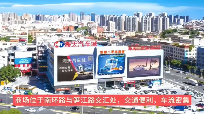 泉州海天汽車城位于南環路、池峰路、筍江路三大主干道交匯處,形成區域性交通樞紐,具備顯著的流量優勢,作為鯉城區西南部重要交通節點,日均承接過境車流、物流運輸及區域性消費車流。三路交匯形成270°視野范圍,確保各方向來車均能有效識別廣告內容。今天給大家介紹下泉州戶外LED大屏廣告價格和熱門位置推薦。